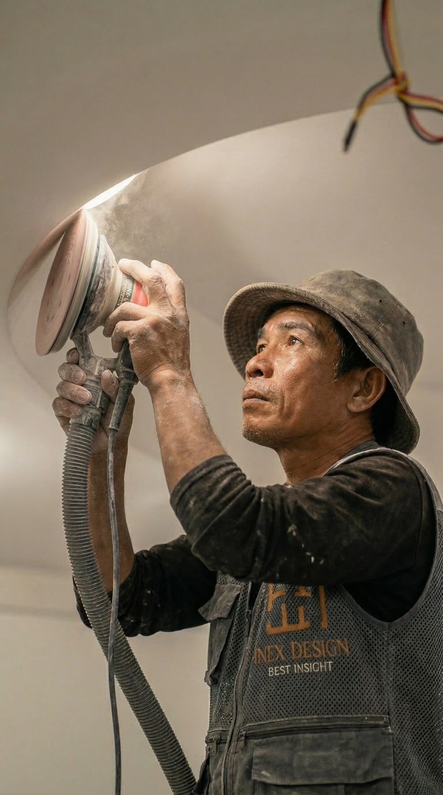 • Trần: Lắp đặt hệ khung xương, tấm thạch cao, tạo hình khe sáng, hốc rèm và các chi tiết trang trí trần.