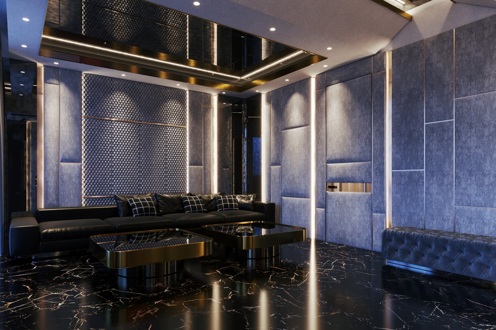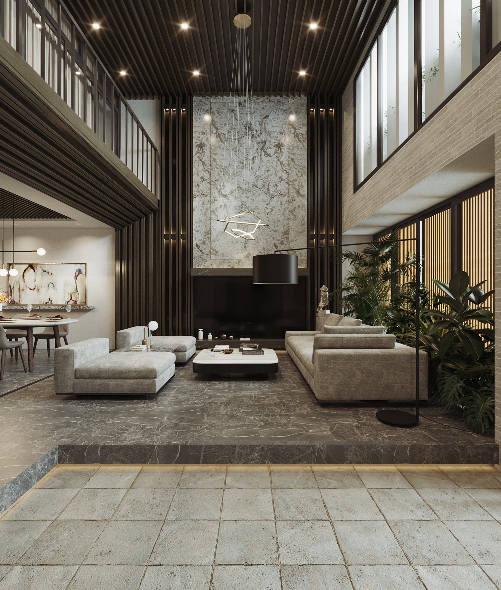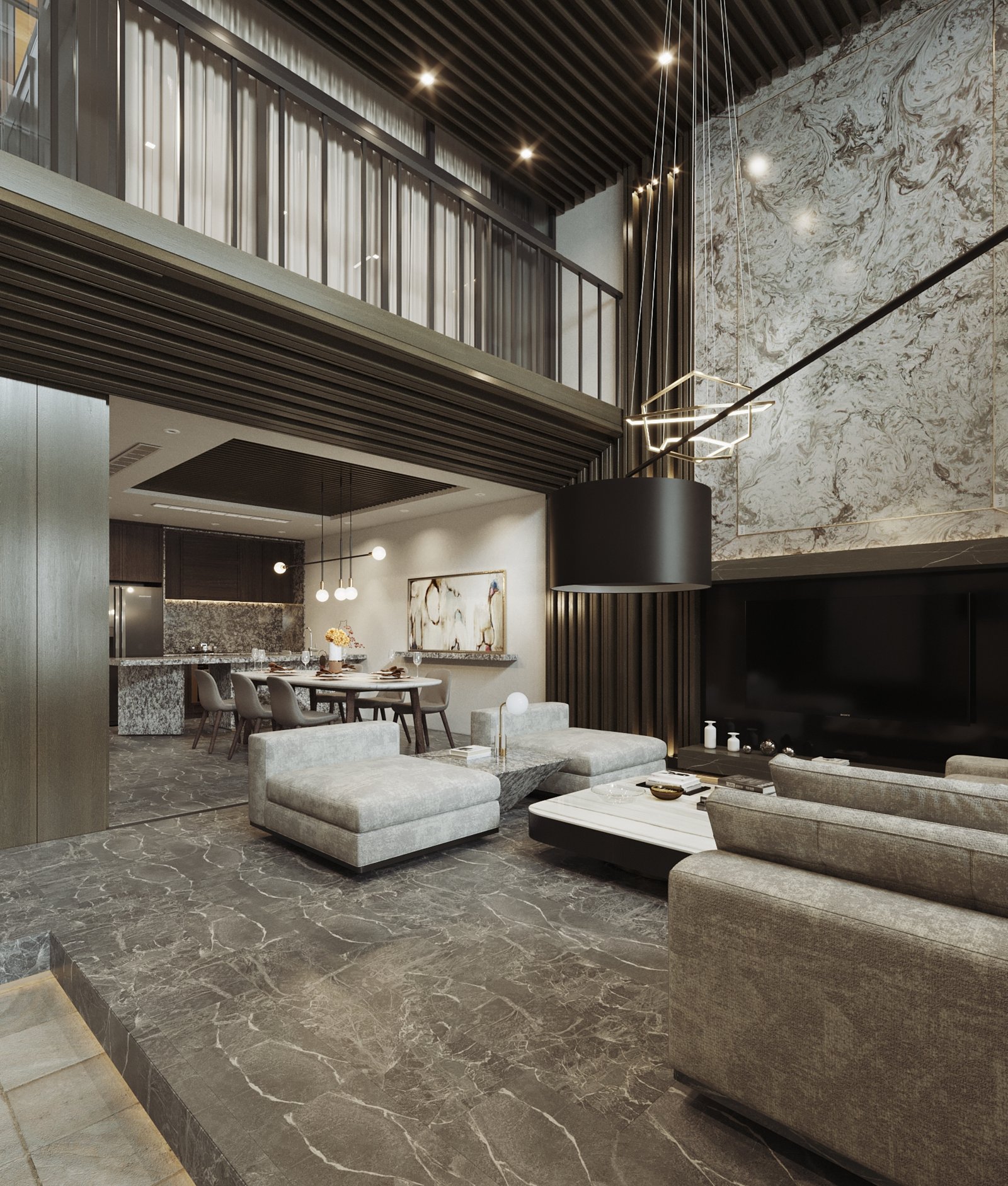 Phối hợp vật liệu cao cấp, màu sắc giúp không gian lộng lẫy và sang trọng.
