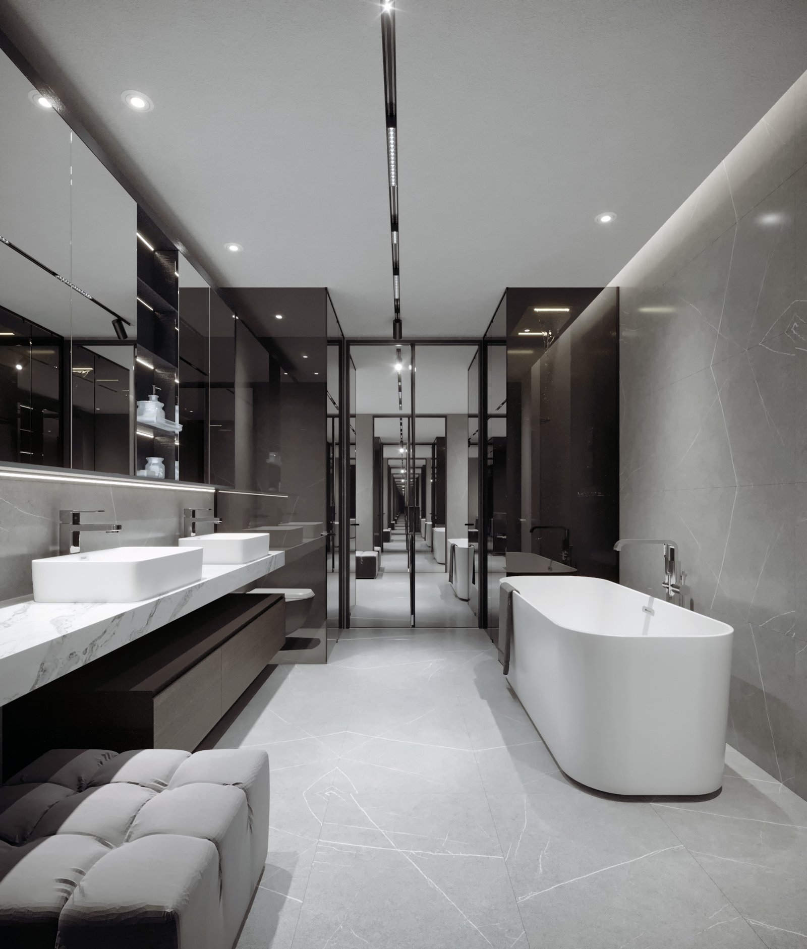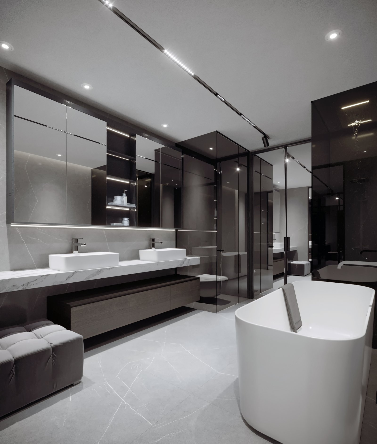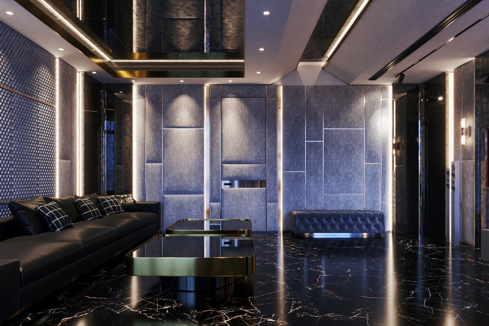 Phối hợp vật liệu cao cấp, màu sắc giúp không gian lộng lẫy và sang trọng.