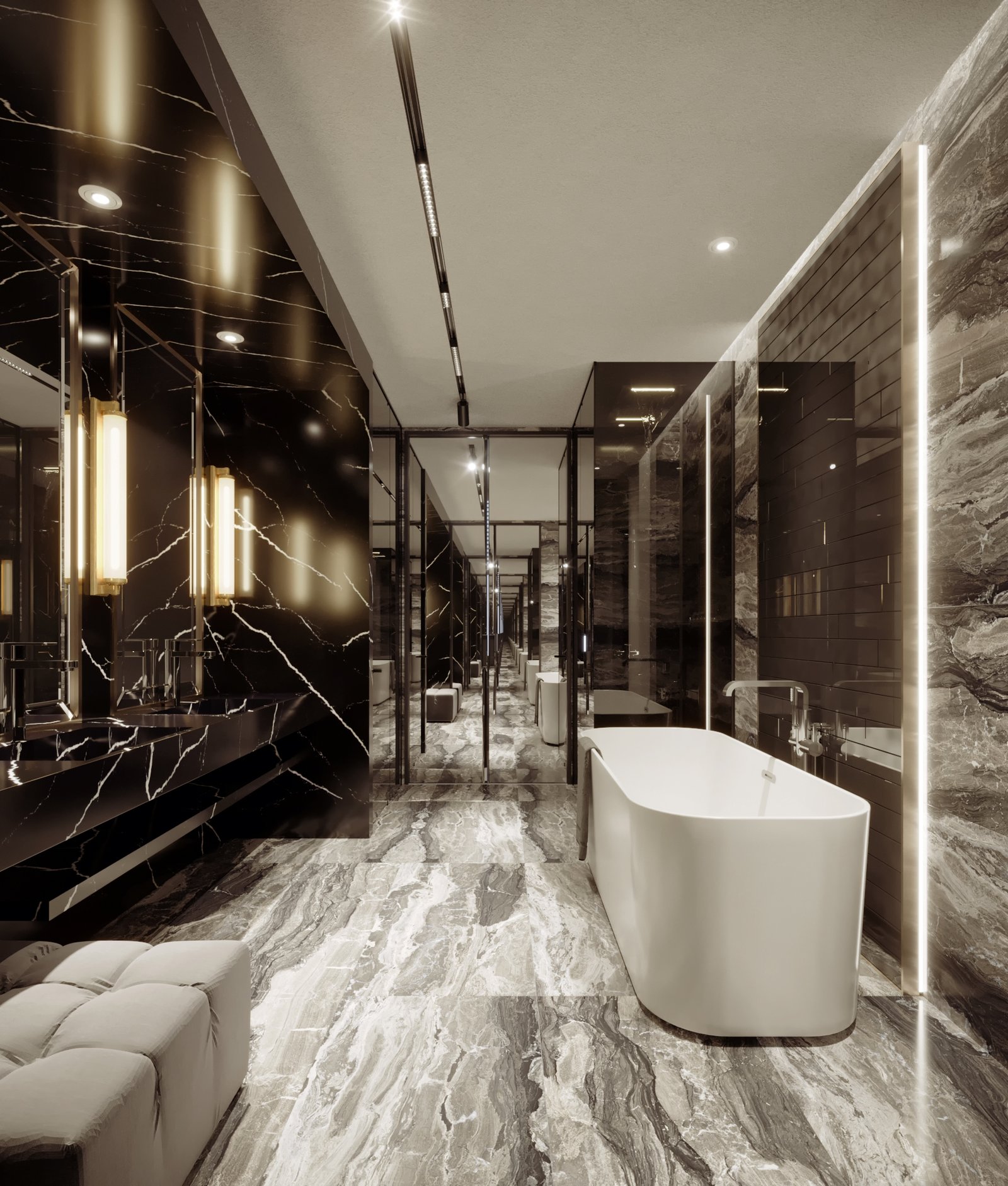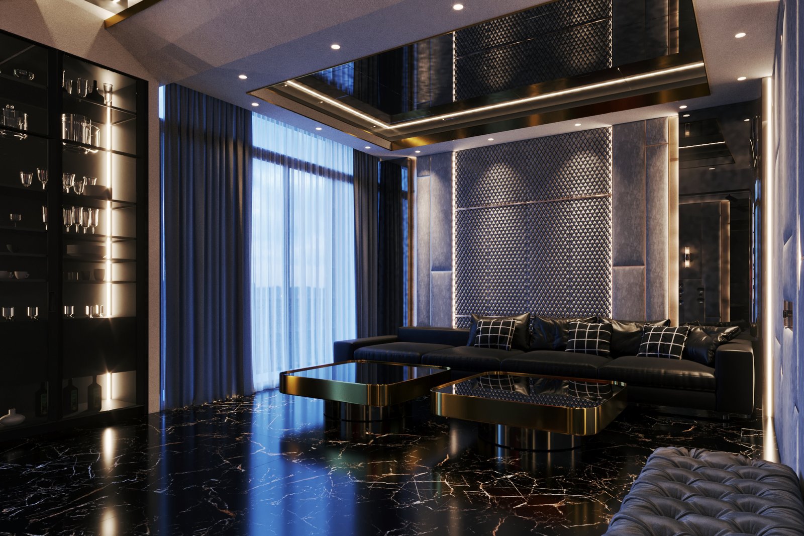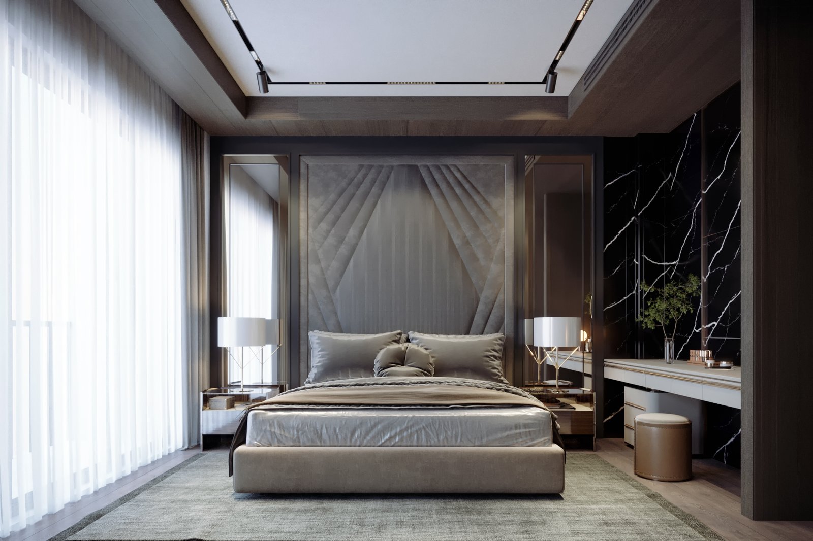Phối hợp vật liệu cao cấp, màu sắc giúp không gian lộng lẫy và sang trọng.