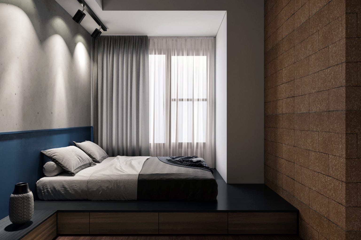 Bố trí khoa học giúp căn hộ 1+1 trở nên gọn gàng và đầy đủ công năng.